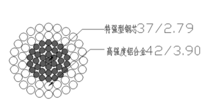 3)导线中心起承载加强,机械强度≥1770Mpa的G4A特强钢芯,从而达到增加拉断力的目的,并且铝钢截面比为2.2。